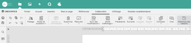 Afficher l'historiqueUne fois le document ouvert dans Unicloud, l'historique des versions est disponible à partir de l'onglet Fichier ou Collaboration.ÉcranOnglet Fichier⚓121 Fichier2 Historique des versions1 Fichier⚓Cliquer sur Fichier pour afficher le menu.2 Historique des versions⚓Cliquer sur Historique des versions.ÉcranOnglet Collaboration⚓11 Collaboration1 Collaboration⚓Cliquer sur Collaboration pour ouvrir l'historique.ÉcranHistorique du document⚓11 Historique1 Historique⚓L'historique des versions s'affiche dans la colonne de gauche du document.